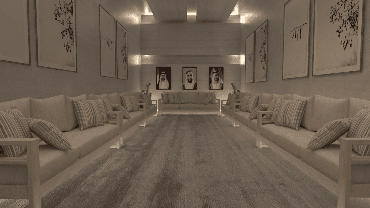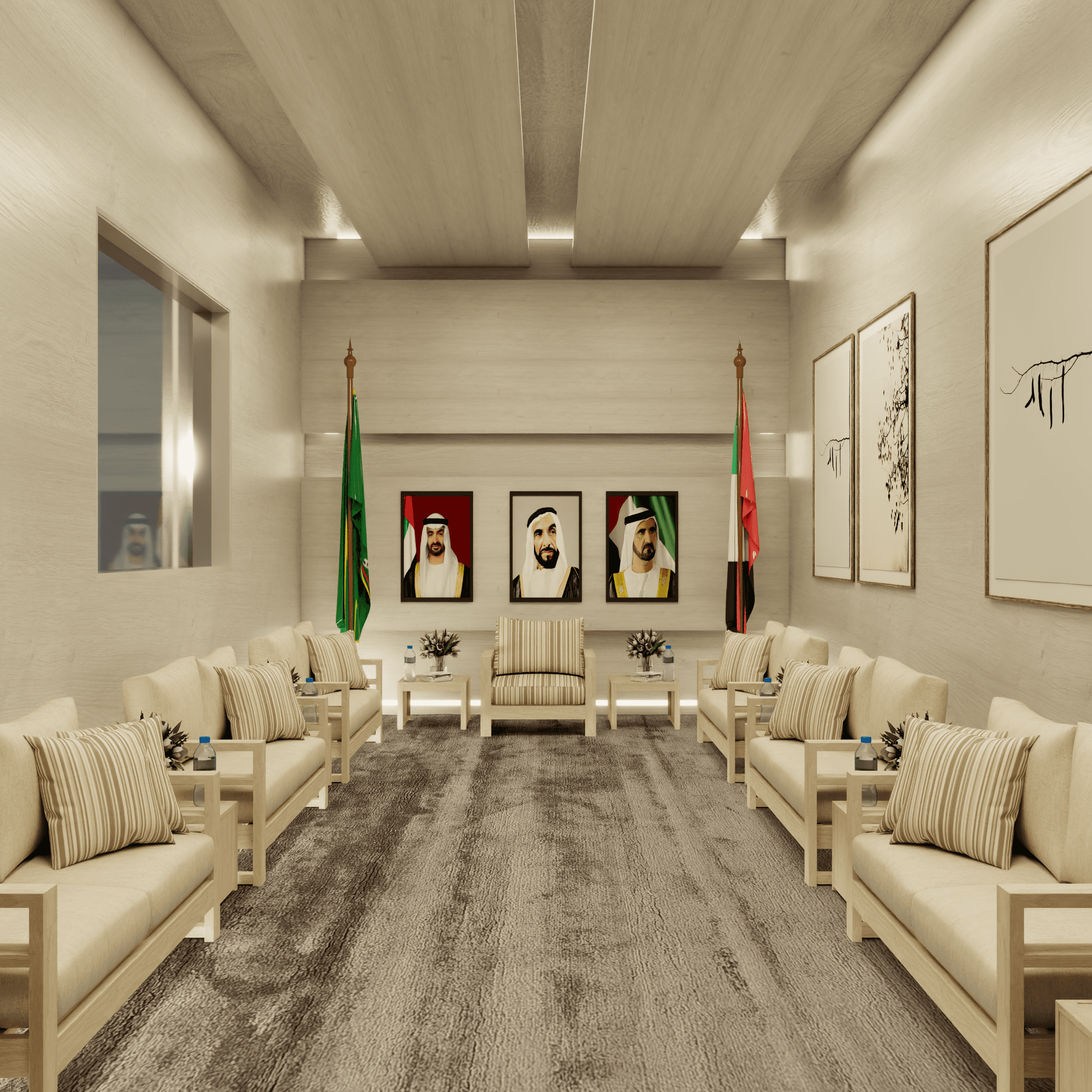 We focused on "Digital Materiality", ensuring that the gold accents, traditional carpets, and formal seating arrangements looked indistinguishable from reality. Our 3D renders served as the definitive blueprint for the fit-out contractors, bridging the gap between concept and execution. The result was a serene, commanding environment that honored the traditions of the UAE while reflecting the modern vision of the Zayed Military University.