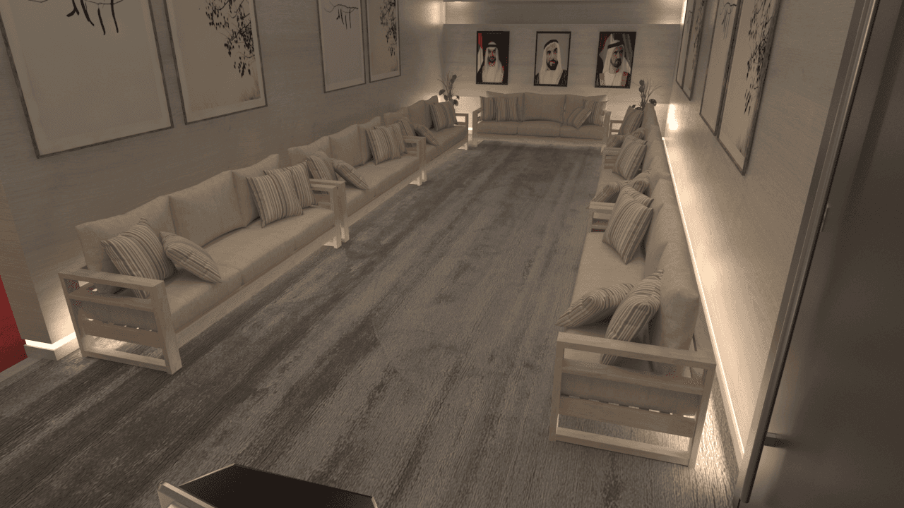 Designing absolute prestige. A 3D visualization of the VIP Majlis dedicated to hosting the Royal Family during the University's inaugural ceremony.